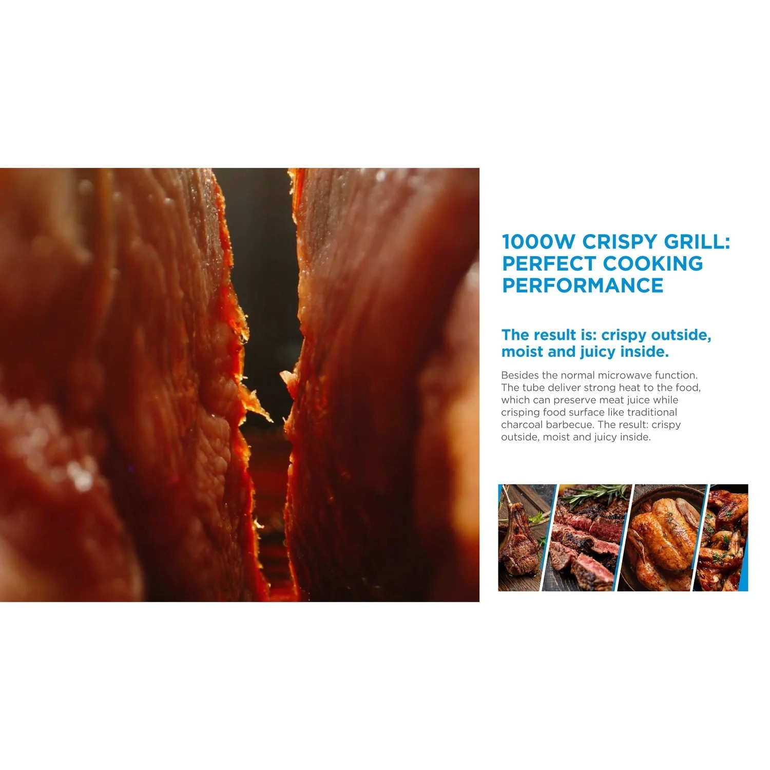 Datorită funcției de combinare grill + microunde, poți obține preparate bine gătite în interior și crocante la exterior.