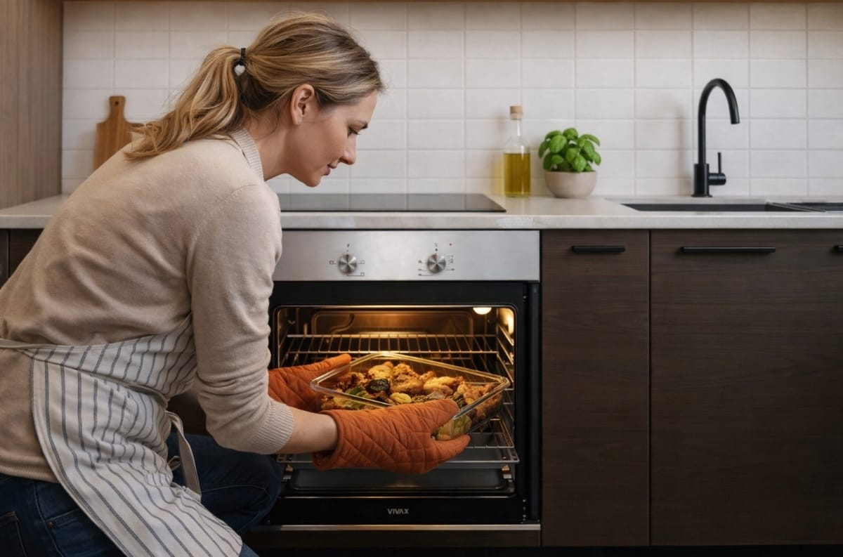 Încălzitor superior și inferior simultan, pentru coacere clasică — ideală pentru prăjituri, fripturi sau lasagna.