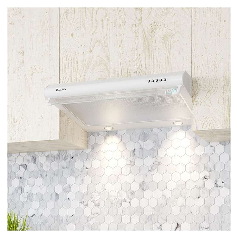 Hota traditionala Tornado Bona 10 (50) LED, 1 motor, latime 50 cm, absorbtie 380 m3/ora, filtru anti-grasimi aluminiu 5 straturi, Alb.