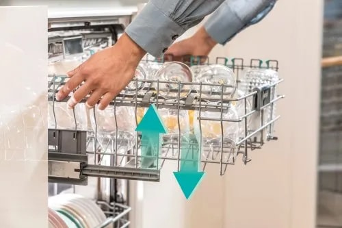 Cosurile sunt echipate cu elemente mobile evidentiate si un aspect personalizabil al cosului pentru incarcare usoara. Sistemul cu adevarat simplu de reglare a cosului pe doua niveluri va permite sa instalati chiar si cele mai mari oale si farfurii. Suportul pentru farfurii din cosul inferior poate fi pliat cu usurinta. Fiecare detaliu este atent proiectat pentru o manipulare cat mai usoara posibila.