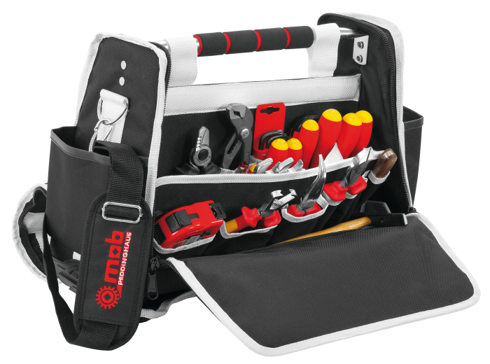 Această trusă include un pachet diversificat de instrumente manuale și accesorii esențiale, organizate într-o geantă textilă Duo-Bag din material dur 1200 denier, ceea ce o face ușor de transportat și perfect organizată pentru intervenții rapide și eficiente.