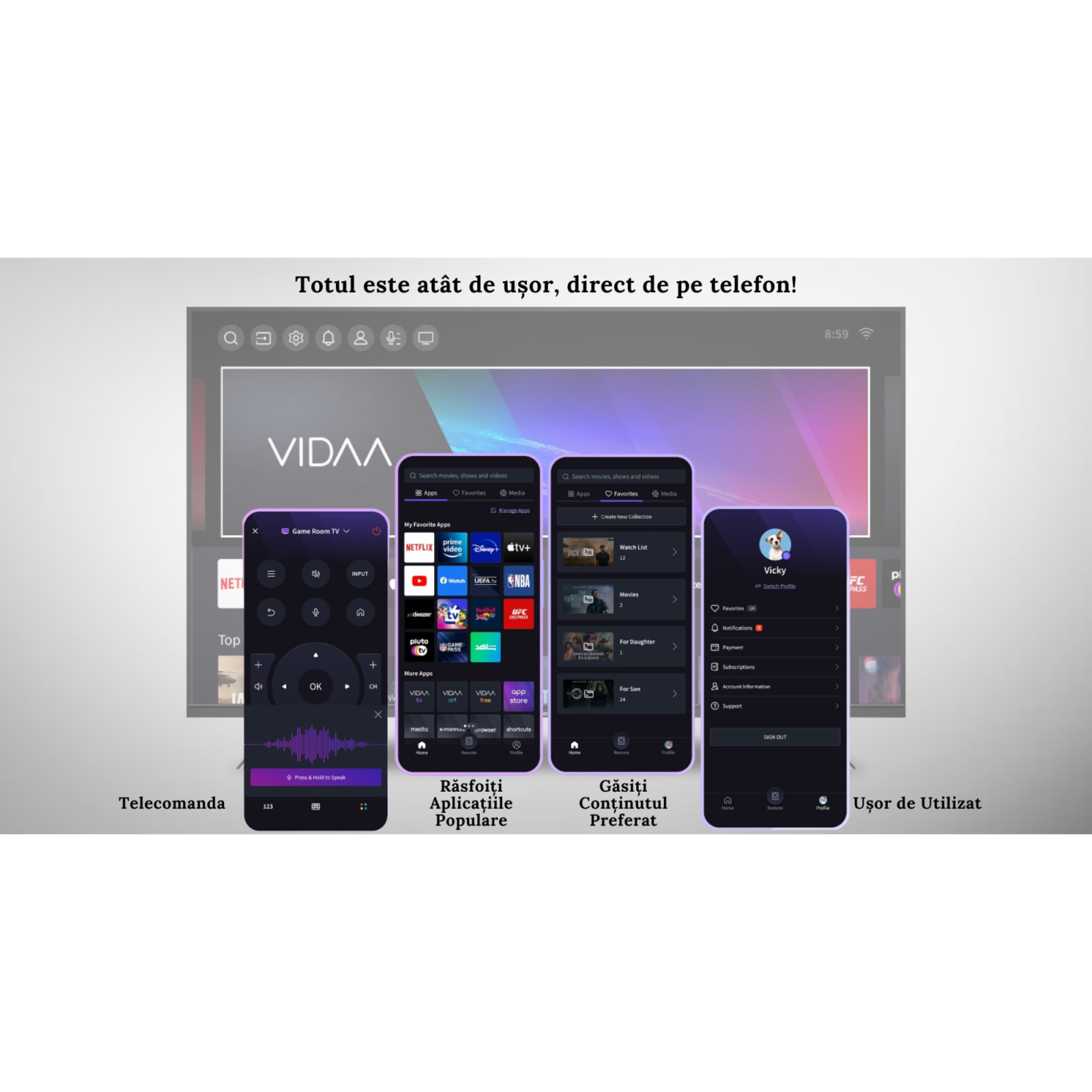 Integrează sistemul de operare VIDAA OS, ușor de navigat și optimizat pentru streaming.
